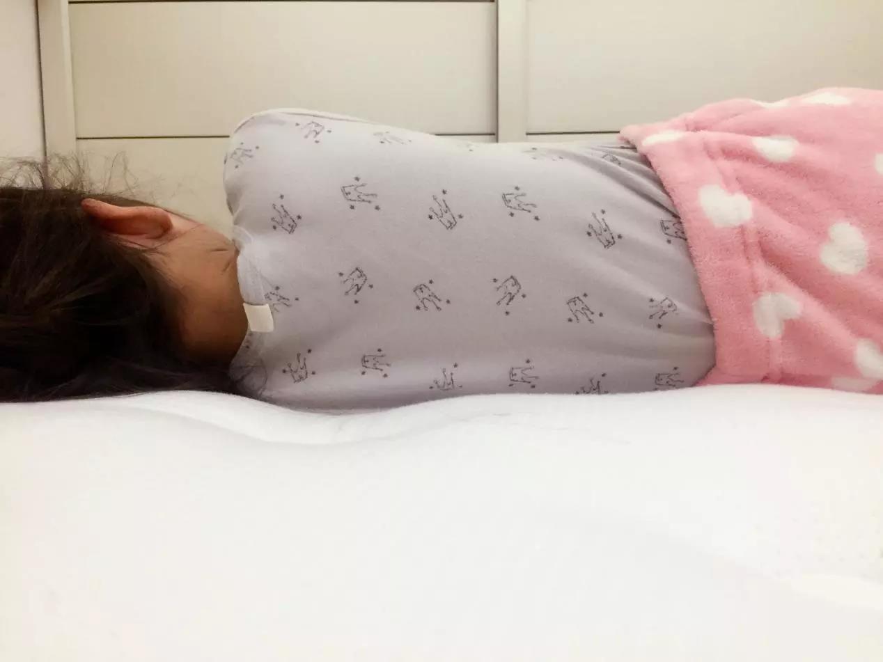 接着是侧面,如图所示依旧承托效果让人满意。这里特别指出一点,脖子是没法贴合床垫的,会有稍许腾空。