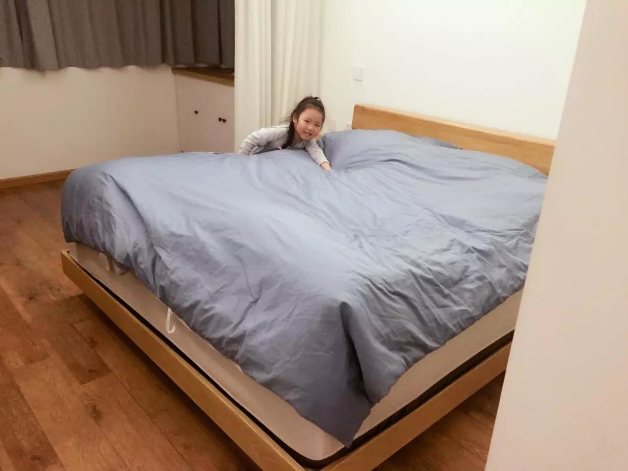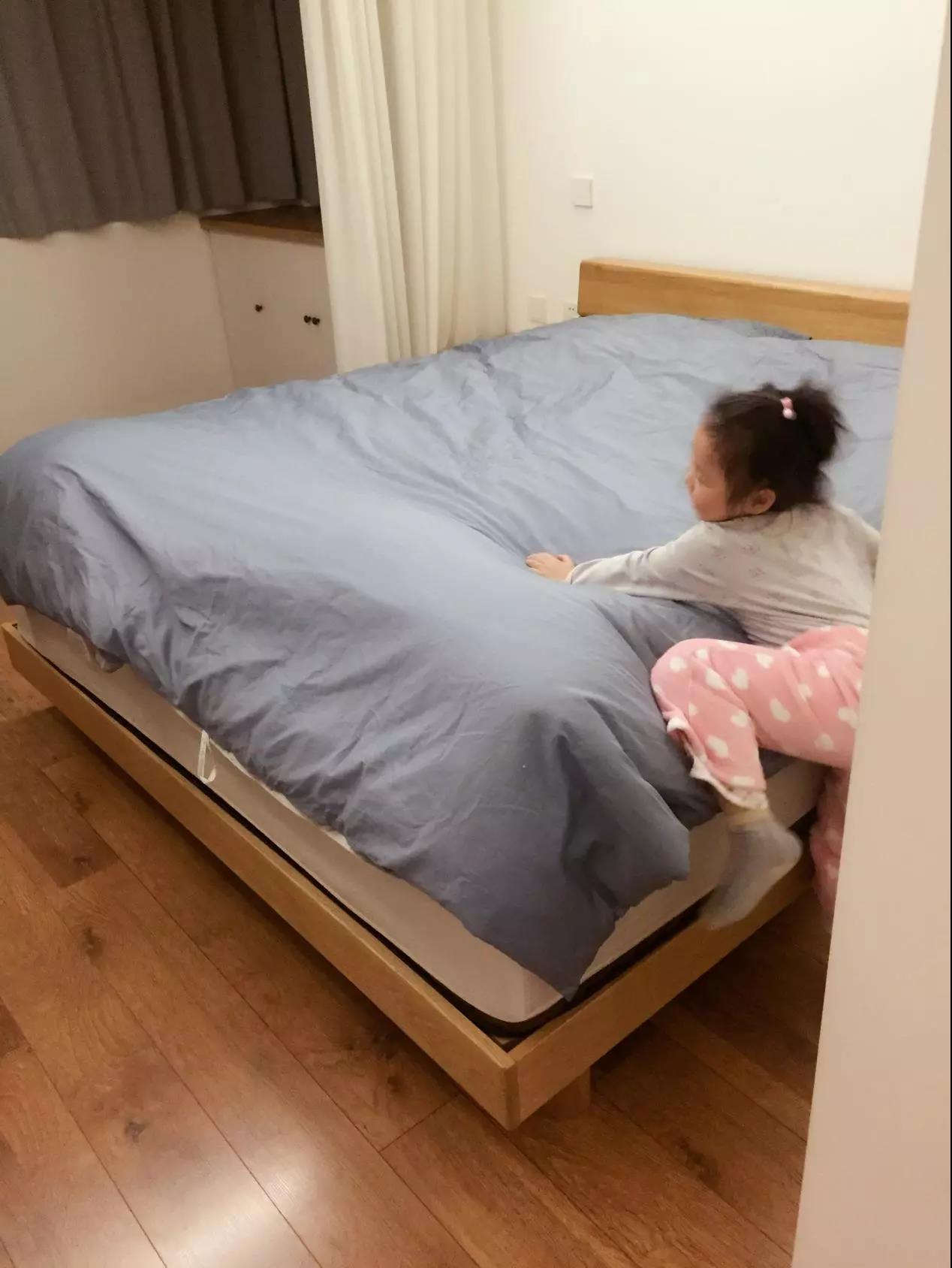 实在是怕那么重的床垫加上我家小妞卖力的蹦跳,会把床跳塌掉……