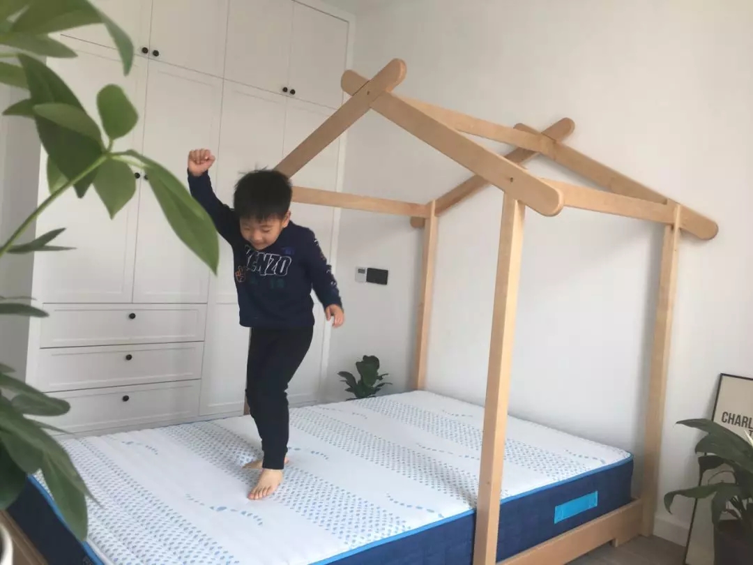 这是一张儿童床垫,他从收到货的那一刻起,就全程参与了,他说喜欢那肯定是他喜欢的,他说躺着很舒服,那肯定也是舒服的。他还尤其喜欢在上面赤着脚蹦跳,今天又悄悄征求我的意见,妈妈我可以去上面跳一下吗,喜爱之情溢于言表。