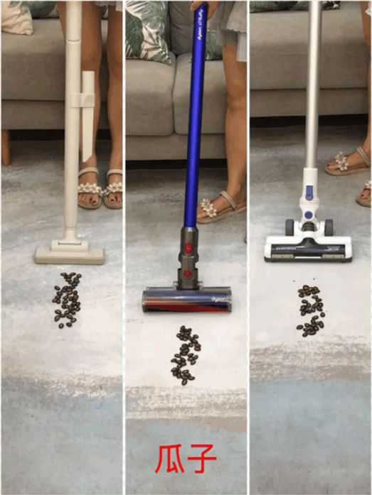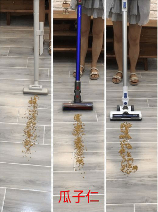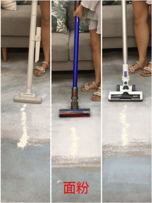 说了这么多,大家最关心的还是这款吸尘器的吸力强不强呢?放心,我为大家做了几个测试,为了更加直观,找来两个配角进行对比。一个是正负零吸尘器,还有一个是戴森V7吸尘器。