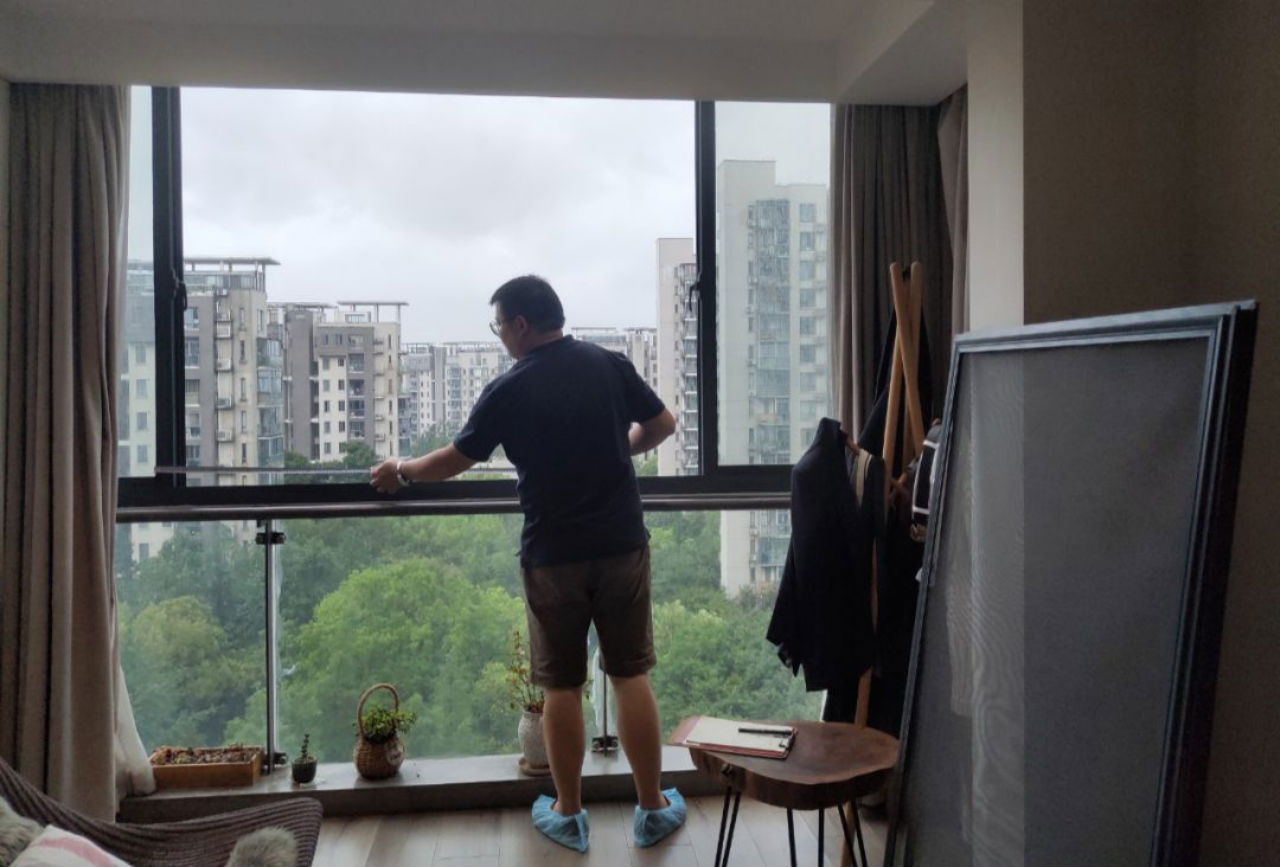 自带鞋套,进门确认了我需要更换纱窗的3面大窗户位置,立马开量。