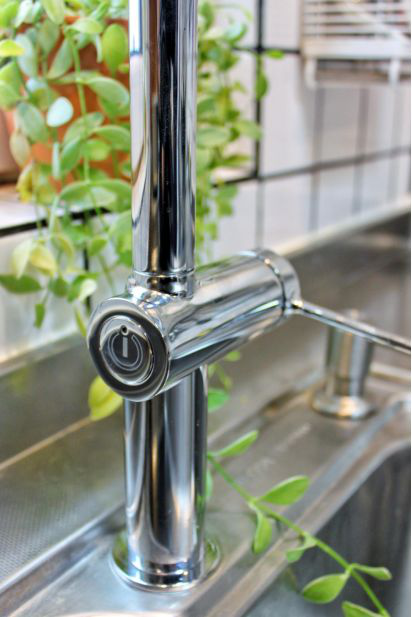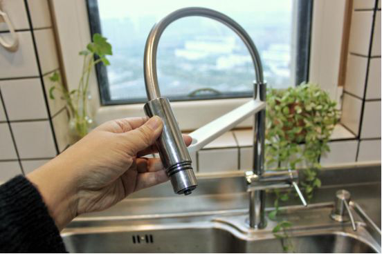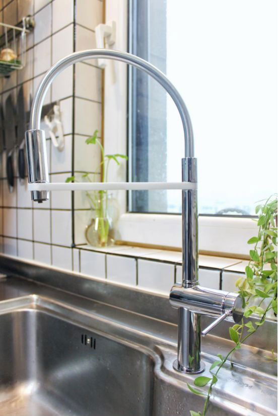 使用起来上手非常容易,水龙头的金属把手是负责开关冷热生活用水的。由于上面是软管设计,所以龙头可以随时取下冲刷水槽各个位置。
