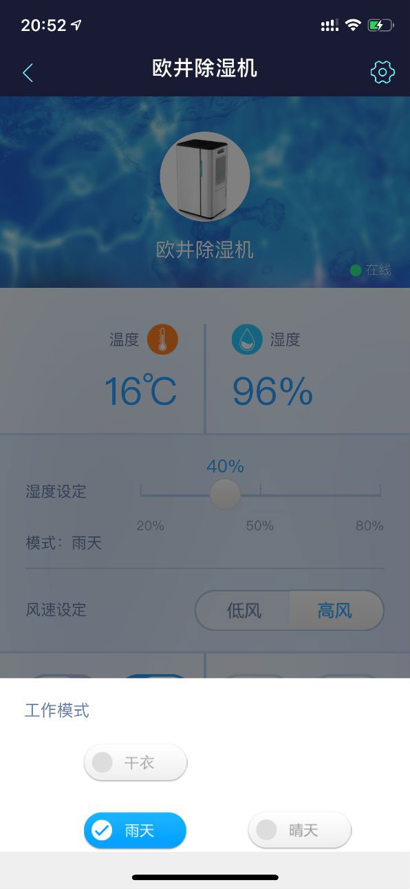 我这次先选择了雨天模式,感觉可能除湿速度会快一些?