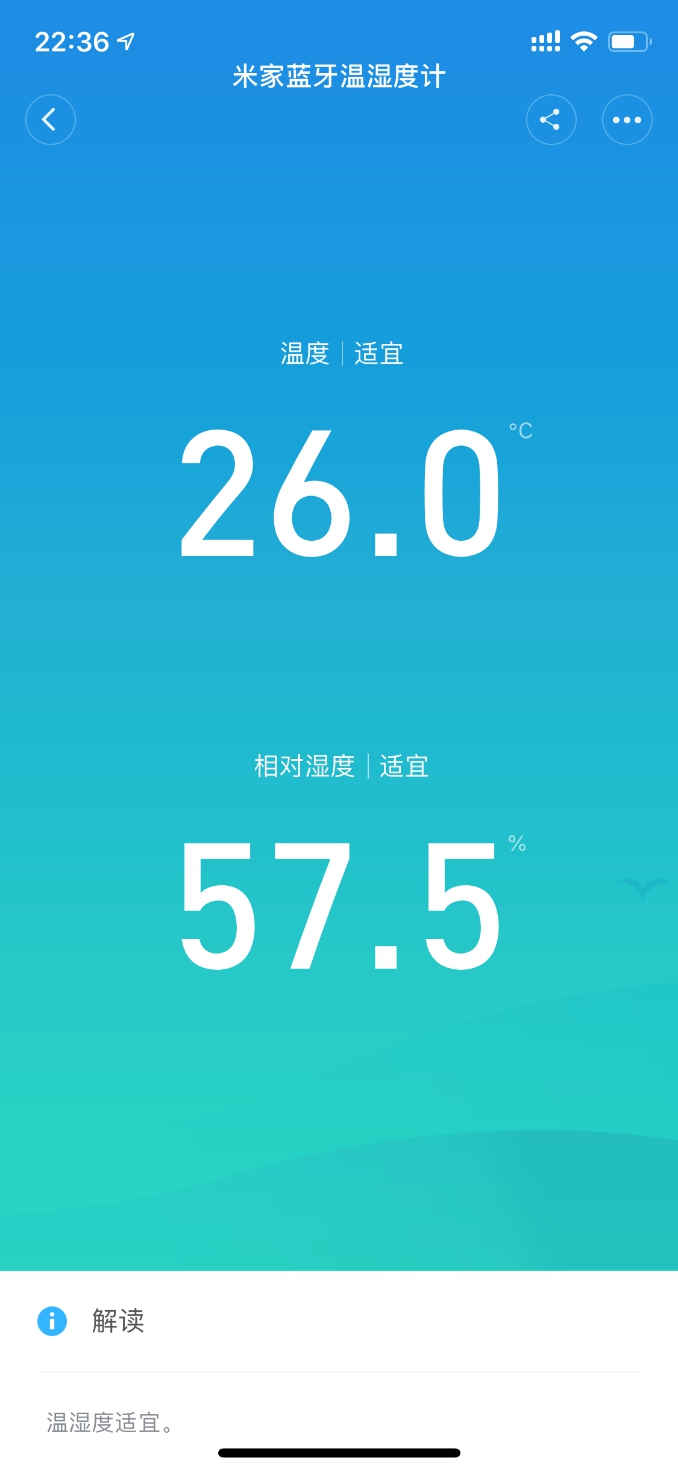 (app上的湿度比小米的略微升高了一丢丢丢丢丢,主要是由于两次拍照间隔时间,阳台上晾晒了衣服所以湿度也升高了一些。两个软件上的数据还是很接近的。)