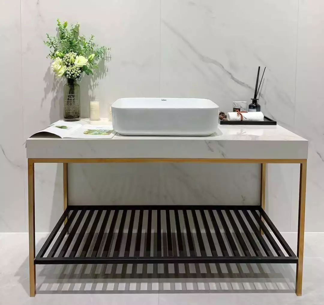 台上单盆+岩板台面配金属脚撑 (适合墙排)