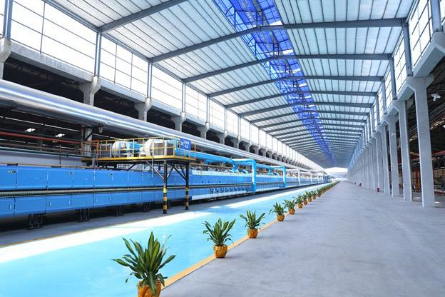 徳利丰的生产窑炉,从压机到窑尾全长近700米的长度,完全像高铁的设计一样,是目前国内最先进的大板生产线。