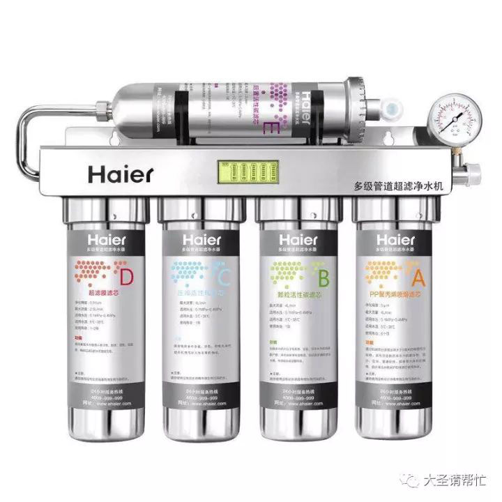 b.带超滤膜的中央净水器可以去除细菌,同时也可以达到上面的效果,一般用于家庭用水量比较的大的,主要用途是拿来直接饮用。