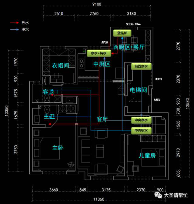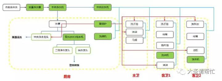 以上仅为示意,具体如何布置还要看各人的需求,比如我家的水路图(见下图)和上图就略有区别,感兴趣的朋友可以好好研究下。
