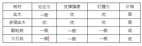 说了那么多,我们不如在用一张图表来总结一下,直接来辨明各个板材的优劣势。