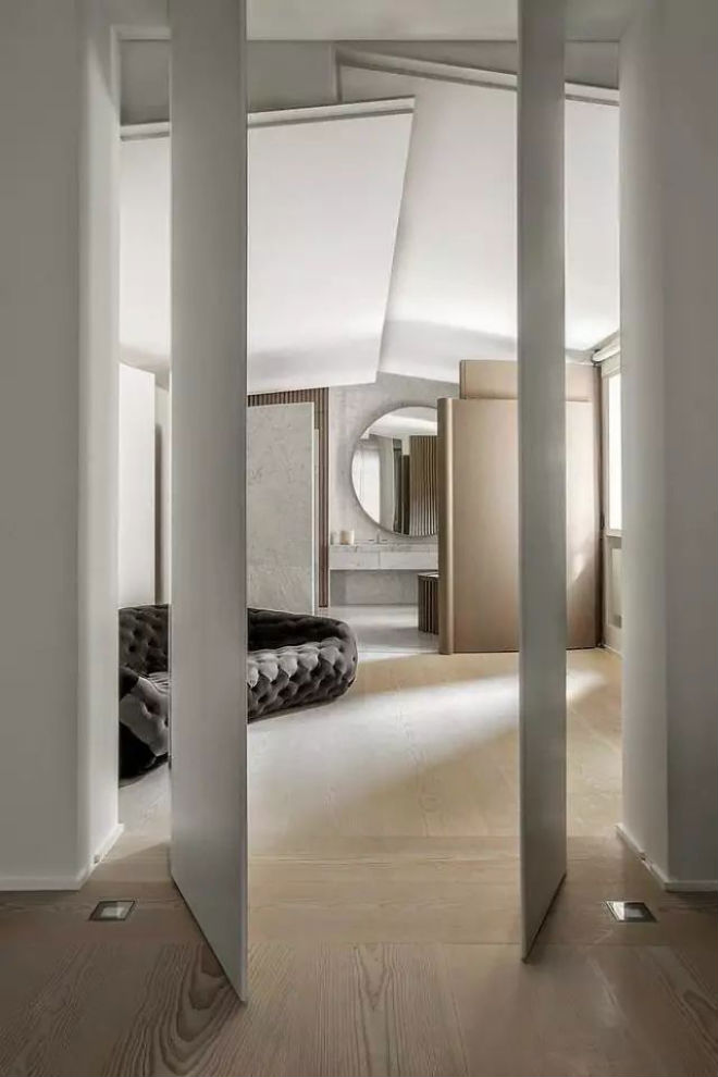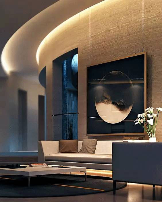 想用吊顶搞个造型,可塑性极强的石膏板是不错的选择。不规则的形状堆积、几何感强烈的装饰手法,让墙体、空间不再是冰冷扁平,真正让室内环境从头顶到地面成为相得益彰的整体。