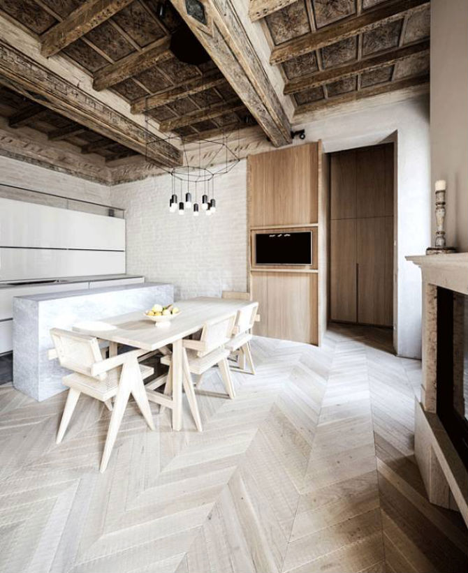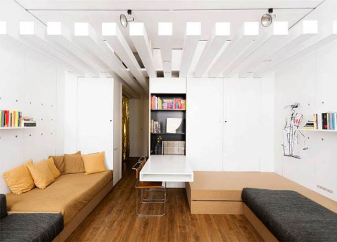 配合家具和墙漆的固有氛围,为了使一切都笼罩在明亮的光线下,我们需要在天花板上预留好空间安装灯具,这样室内的光线会更加和谐。