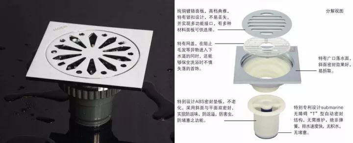 T型地漏排水快,杂质污物随水流直接冲入下水道中,不会藏污纳垢,不易堵塞。不过T型地漏需要回弹才能密封防臭,一旦头发卡在了T和管之间,防臭性能就直接无效。内芯清洁稍麻烦,对内芯(尤其是金属材质弹簧结构)要求特别高。