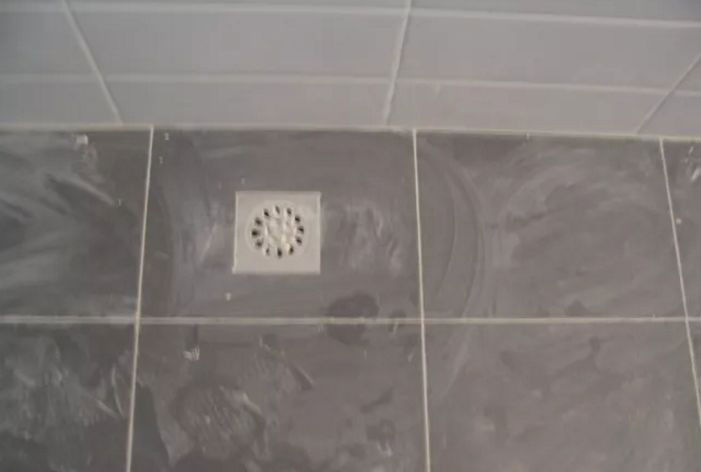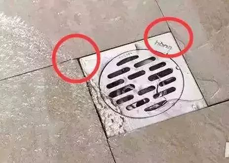 瓷砖中间是平平整整的,直接在瓷砖上切割出地漏的位置,一定会导致下水缓慢甚至积水。下面两张图就是错误示范。